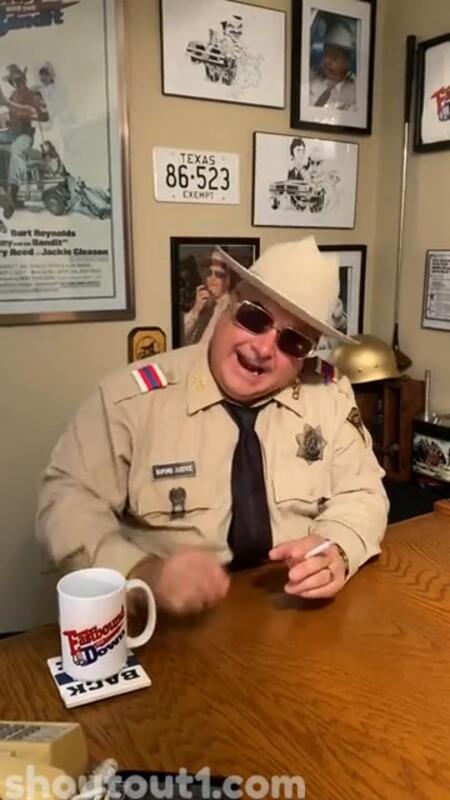 Buford T Justice from East Bound and Down: The Ultimate Smokey and the Bandit Tribute. Movies include Go Fishin’, Babcock Brothers, JD vs Bigfoot & Double or Nothin’. For events and show information, visit BanditandBuford.com